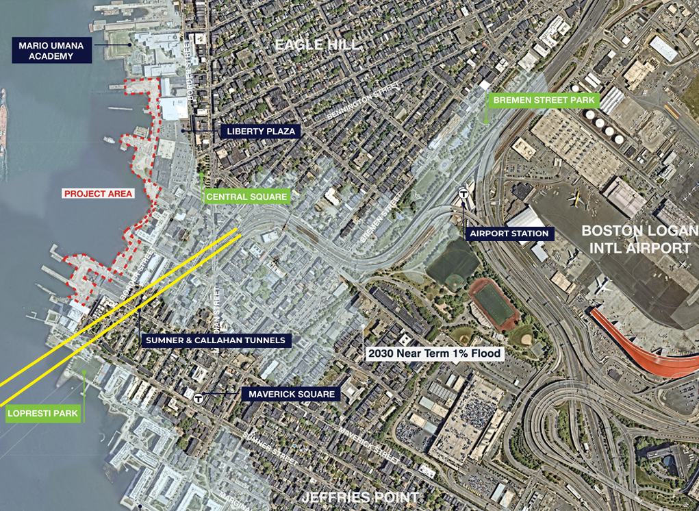 Led by the City of Boston Office of Climate Resilience, the Resilient Border Street Waterfront Project aims to protect East Boston residents, businesses, infrastructure, and open spaces from the impact of flooding. Through partnering with private landowners in the project area, the City is designing coastal flood protection that will repair and elevate existing degraded infrastructure and enhance the waterfront for the public while working within existing the Designated Port Area (DPA).